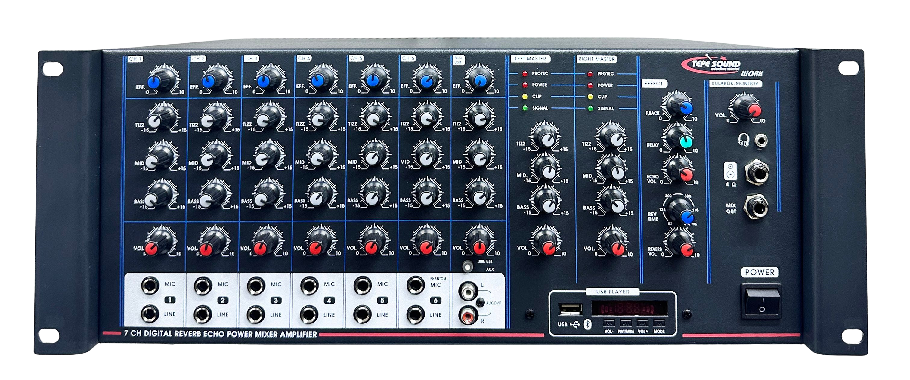 Her kanal Volum,Bass,Midd,Tizz,Effect Control